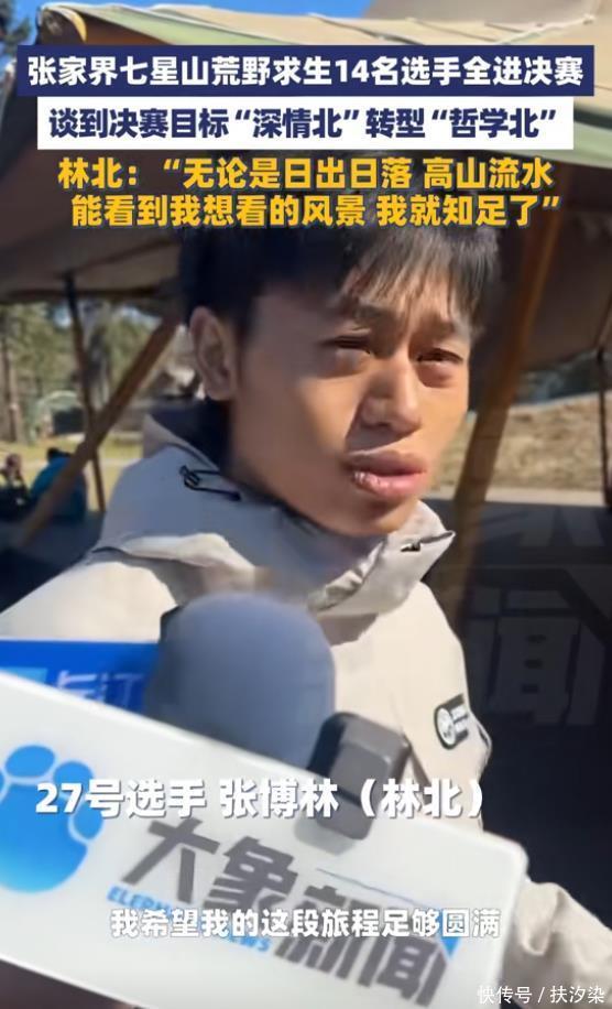 女粉丝表示,她和女儿喜欢看林北的视频,她女儿也喜欢看猴子,看到比较瘦的就很喜欢,才到现场看林北。 已经经历41天荒野生存的林北,脸上的脂肪减少很多,牙齿缝变宽,嘴唇缺盐水肿,曾表示瘦到自己不敢认。 他在比赛中经常爬树,和猴子一样灵活,会对着大山嚎叫,模仿猴子的叫声。
